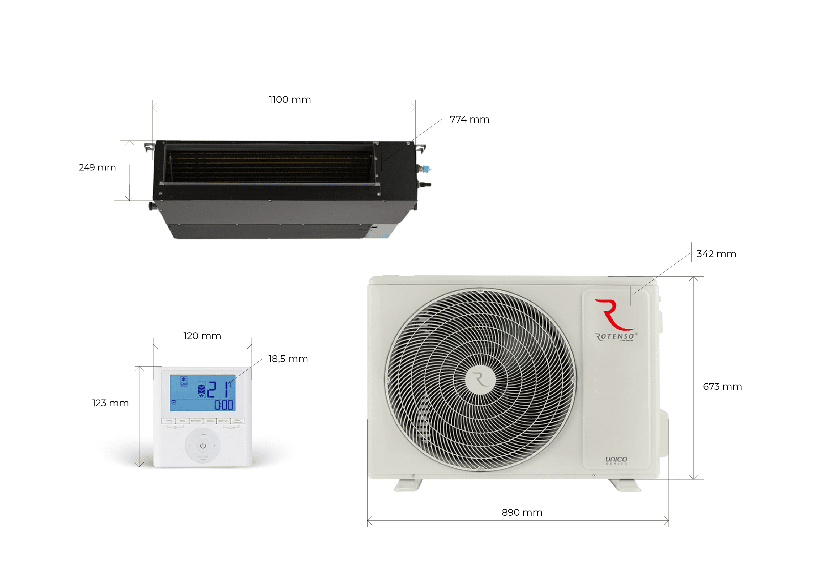 | Wymiary, jednostka wewnętrzna, [s × g × w], [mm]: | 1100 × 774 × 249 |
