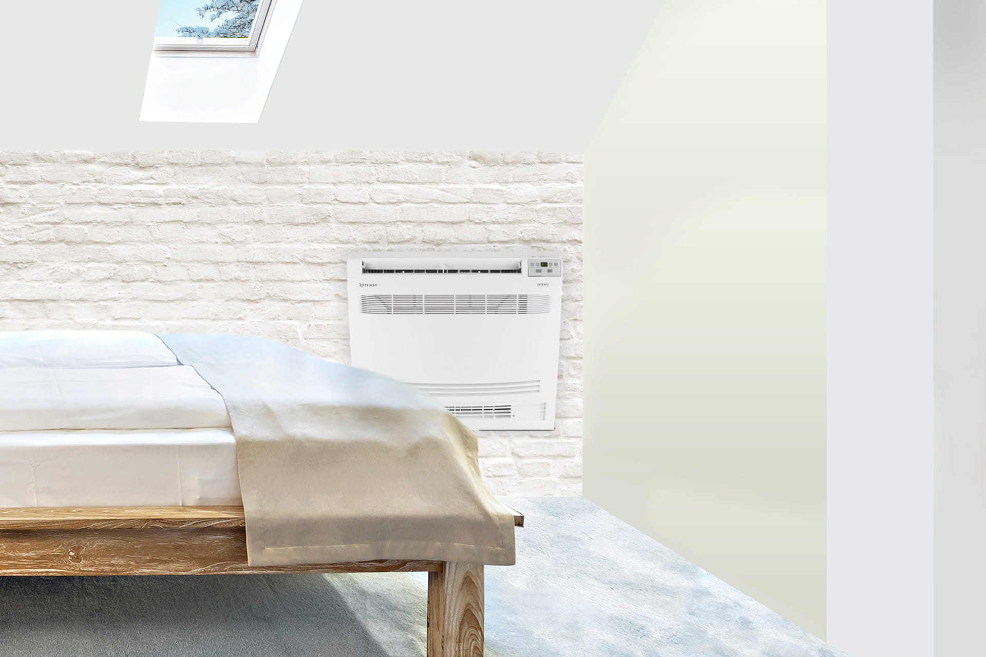 Klimatyzator konsolowy Rotenso Aneru to znakomite rozwiązanie na poddasze – miejsce szczególnie narażone na nagrzewanie spowodowane przez niedostatecznie izolowany dach lub okna dachowe. Kompaktowe wymiary i przede wszystkim niewielka wysokość Aneru (tylko 0,6 m) pozwala zastosować klimatyzator w prawie każdym pomieszczeniu z niskimi ścianami kolankowymi (skosami), tak często występującymi na poddaszach.