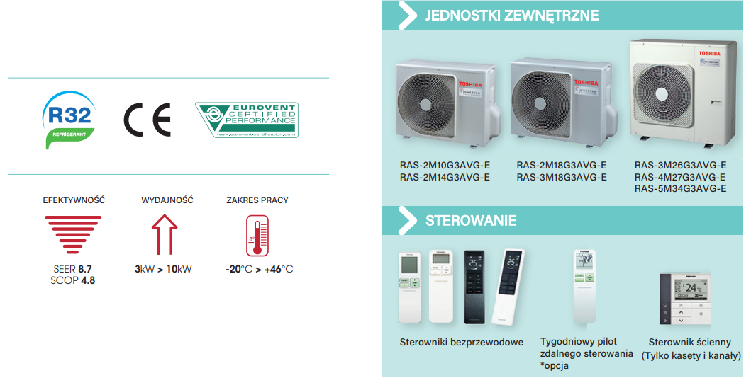Szeroki wybór jednostek wewnętrznych zapewni wiele możliwości instalacji, a wysokie sezonowe współczynniki efektywności energetycznej (SEER oraz SCOP) umożliwią niskie zużycie energii elektrycznej.