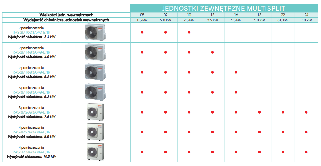 | Max ilość jedn. wew. | 3 jednostki wew. |