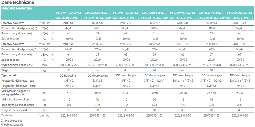 | Poziom hałasu jednostki zewnętrzny [dB]: | 45 (min) |