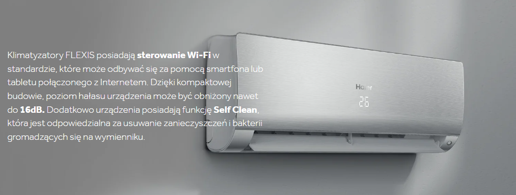 Klimatyzator ścienny Haier FLEXIS PLUS | SILVER SHINE AS25S2SF1FA-S/1U25S2SM1FA-2 2,6 kW