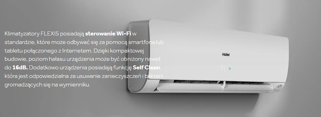 Klimatyzator ścienny Haier FLEXIS PLUS | WHITE SHINE AS25S2SF1FA-LW/1U25S2SM1FA-2 2,6 kW